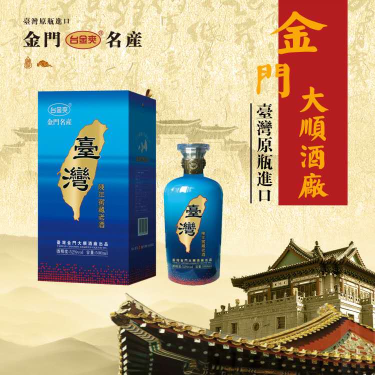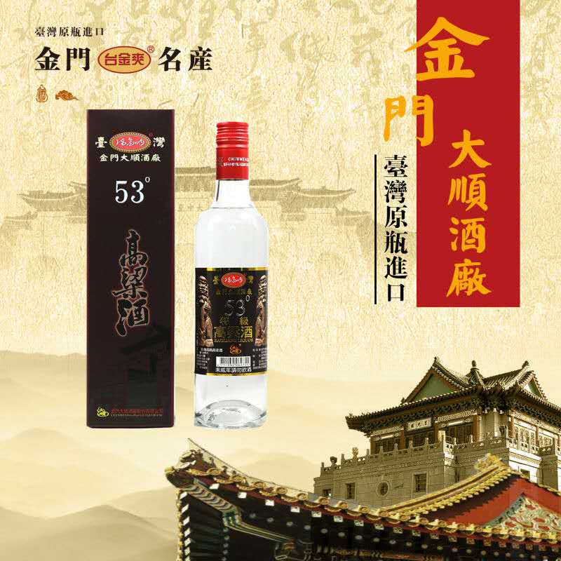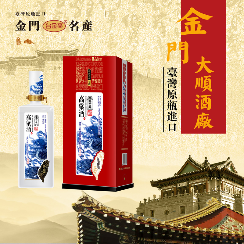 金門大順酒廠,座落于金門北緯24.5度,地處海隅,濱大陸,得天獨(dú)厚的地理,使它擁有絕佳的水質(zhì)、空氣、氣候及原料的四大天然釀酒條件。金門大順酒廠的高粱酒釀造是利用金門特產(chǎn)『旱地高粱』、引用當(dāng)?shù)厮|(zhì)甘甜的泉水、金門潔凈的空氣與氣候條件,并承襲傳統(tǒng)古法之釀酒技術(shù),加上獨(dú)家的釀酒專業(yè)技術(shù)經(jīng)驗【三離二鍋一翻】的發(fā)酵釀酒工藝,經(jīng)掐頭去尾后入庫,去蕪存菁。而造就出金門大順酒廠的高粱酒特色「清澈透明、質(zhì)地純凈、芳香濃郁」之一系列高粱酒。金門大順酒廠制酒承襲著金門得天獨(dú)厚的地理環(huán)境,加上三代流傳之古法醇釀技技術(shù),結(jié)合經(jīng)驗與現(xiàn)代化生產(chǎn),釀出風(fēng)味獨(dú)特,香、醇、甘、冽的【臺島】【臺金爽】【牛樟芝高粱酒】【龍騰鳳舞】【紅雙十】【陳高吶】【臺灣小酒】等多樣系列產(chǎn)品。真實原味、清香散發(fā),甘冽醇厚的絕佳風(fēng)味。